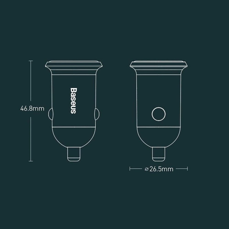 The small Baseus CCALLP-01 charger fits perfectly into your carThis charger is barely larger than… your thumb! Its subtle design and 41mm size make it a nearly invisible and unobtrusive interior design element.