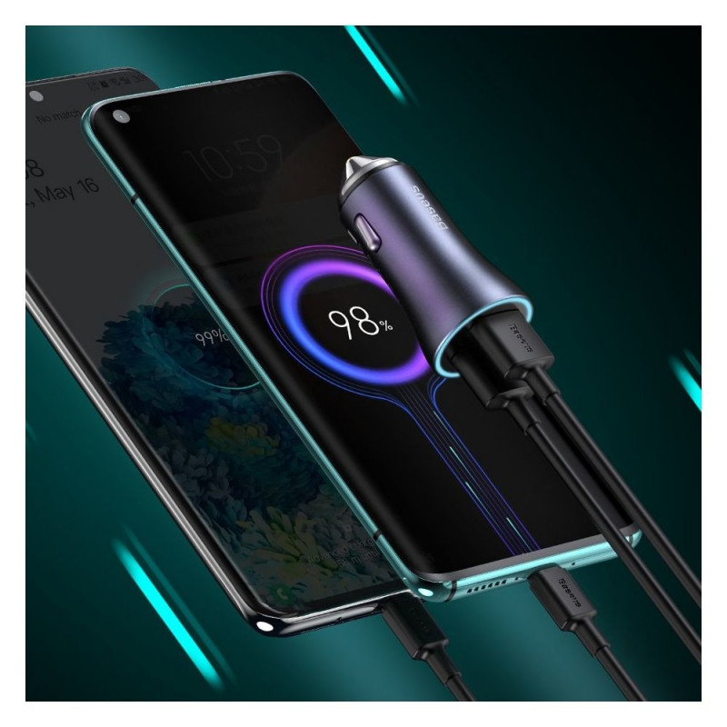 Baseus car charger with USB and USB Type C ports 40 W + USB - USB Type C cable