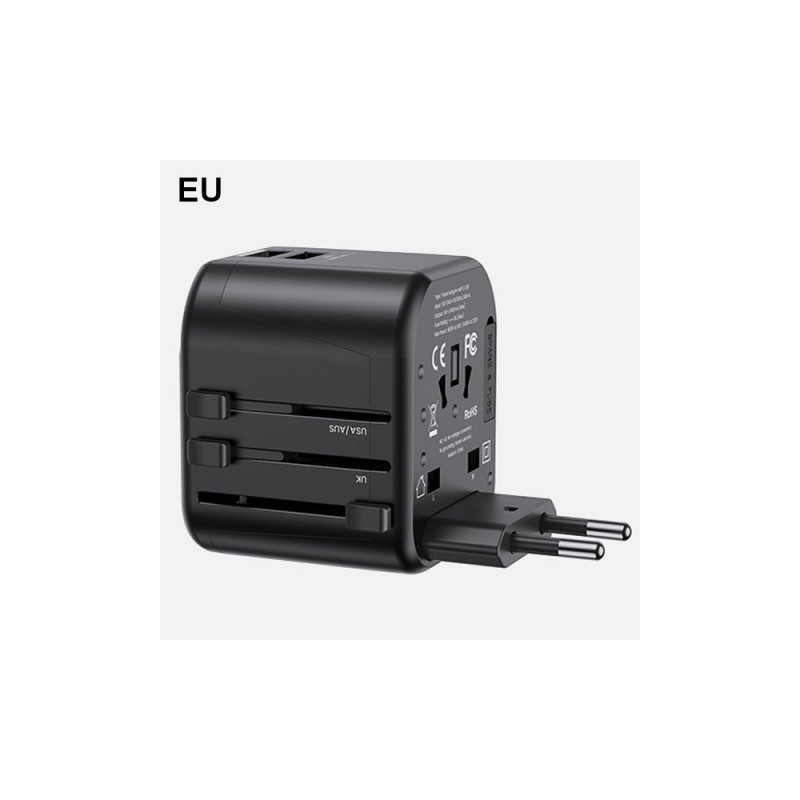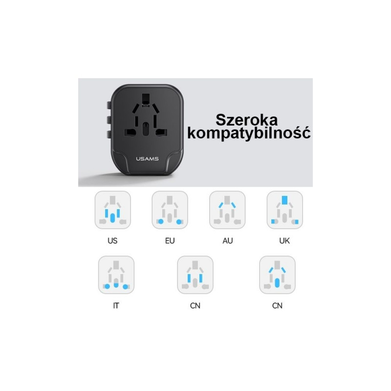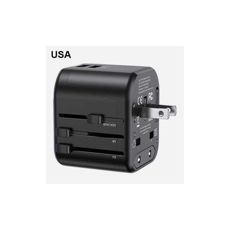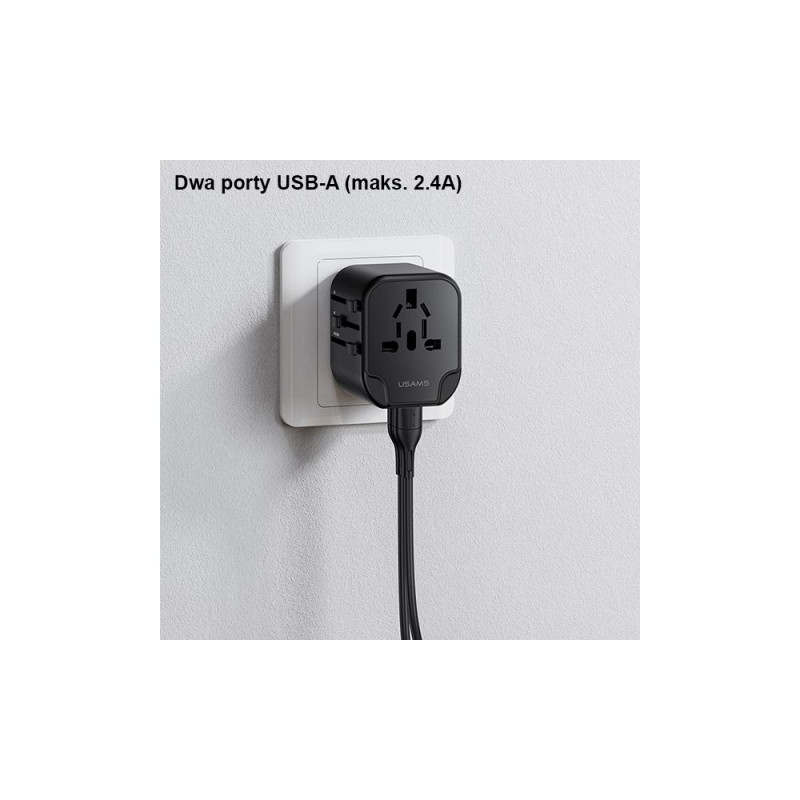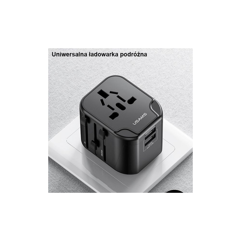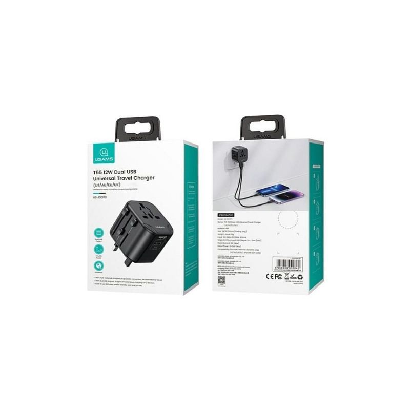 USAMS wall adapter 2xUSB T55 12W 4-in-1 US/AU/EU/UK black CC173TC01 (US-CC173) Universal Travel Char