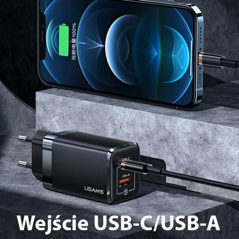 USAMS Wall Charger T41 USB-C + USB GaN 47W PD + QC (head only) Fast Charging black CC137TC01 (US-CC1