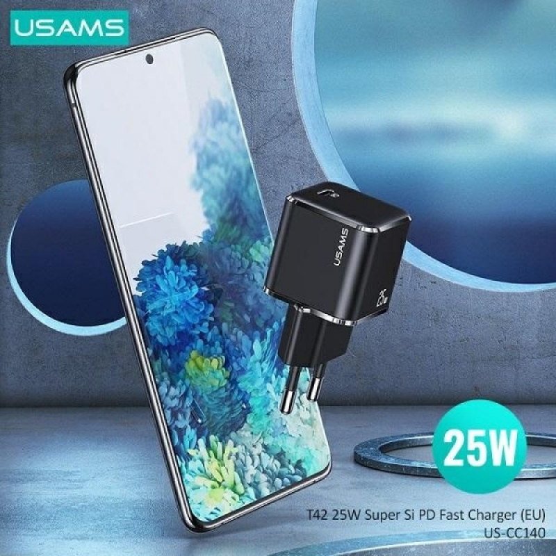 USAMS Wall Charger 1xUSB-C T42 mini 25W (head only) Super SI 5V-3A PD3.0 Fast Charging black CC1