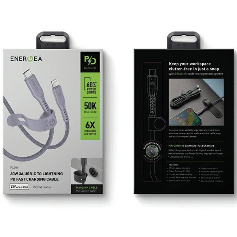 ENERGEA Flow USB-C to Lightning C94 MFI Cable 1.5m Purple 60W 3A PD Fast Charge