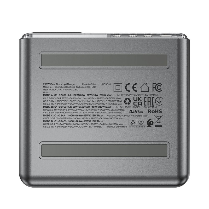 - USB-C1 + USB-C2 + USB-A1: 100W + 100W + 18W - 218W (max)