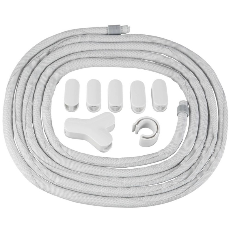 Soba zips up loose cables and consolidates them into a single tube that can be routed and affixed along walls, under desks, anywhere you have multiple cables running that you want to tidy up.