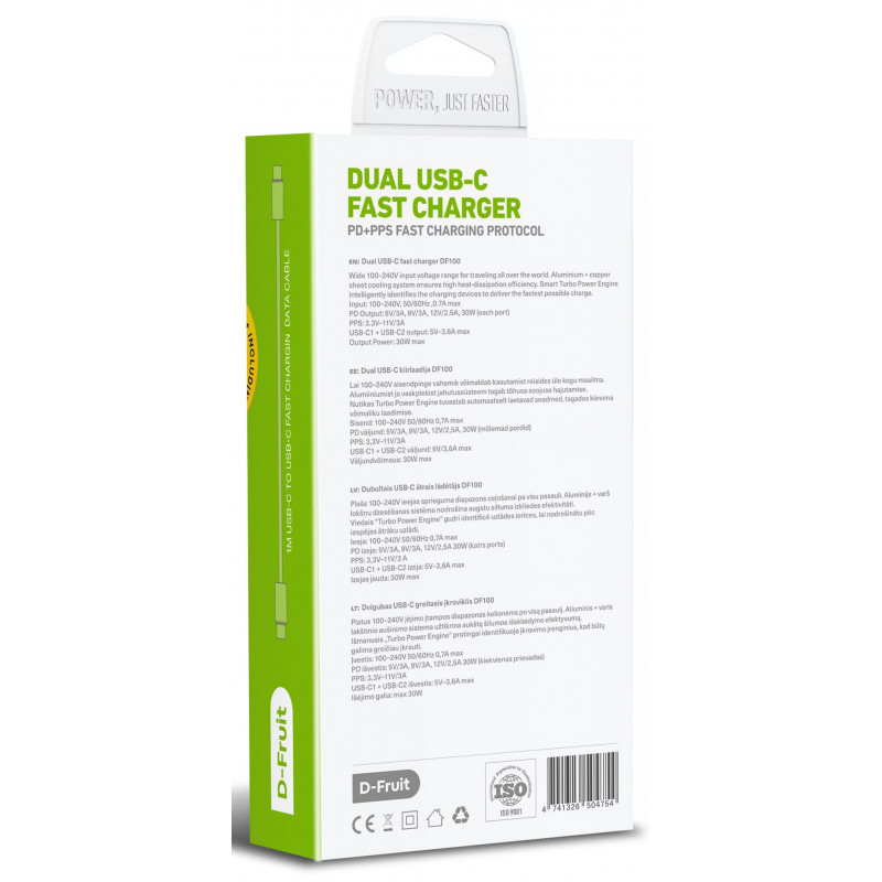 D-Fruit charger 30W 2xUSB-C + USB-C cable DF100 1m