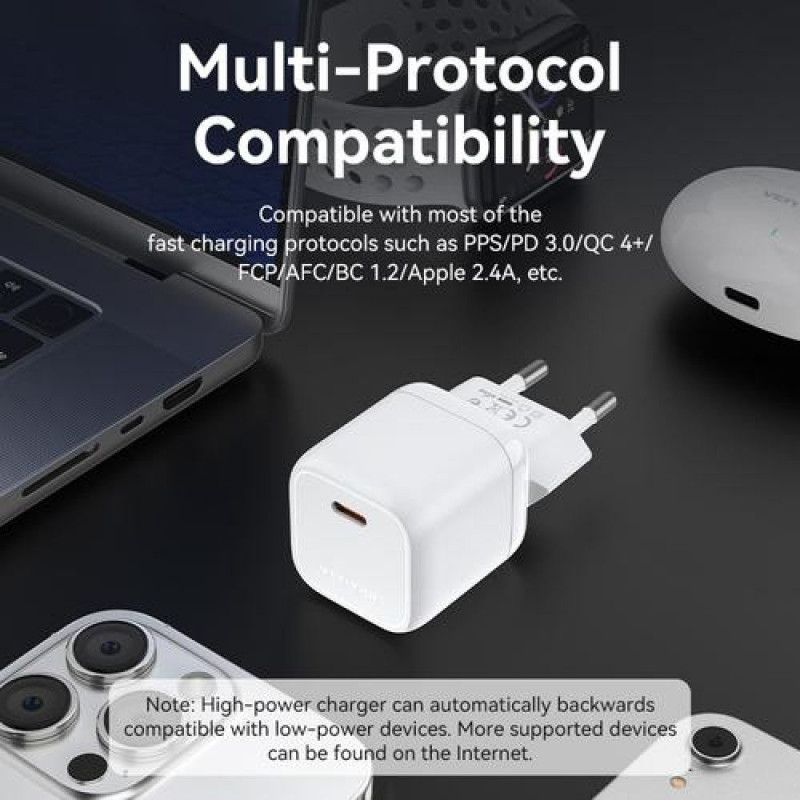 <br />Vention 1-port USB-C GaN Charger(30W) EU-Plug Black. Charger type: Indoor, Power source type: AC, Charger compatibility: Laptop, Smartphone, Tablet. Input voltage: 100 - 240 V, Maximum output voltage: 20 V. USB Type-C ports quantity: 1, FProduct has been archived