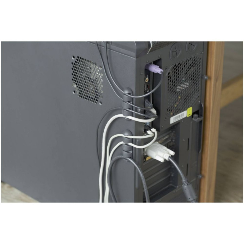 - Keeps up to four cables tethered to flat surfaces to prevent them from slipping away under desks and nightstands