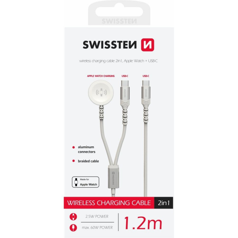 Swissten 2in1 Wireless Charger for Apple Watch and USB-C / USB-C / 1.2m