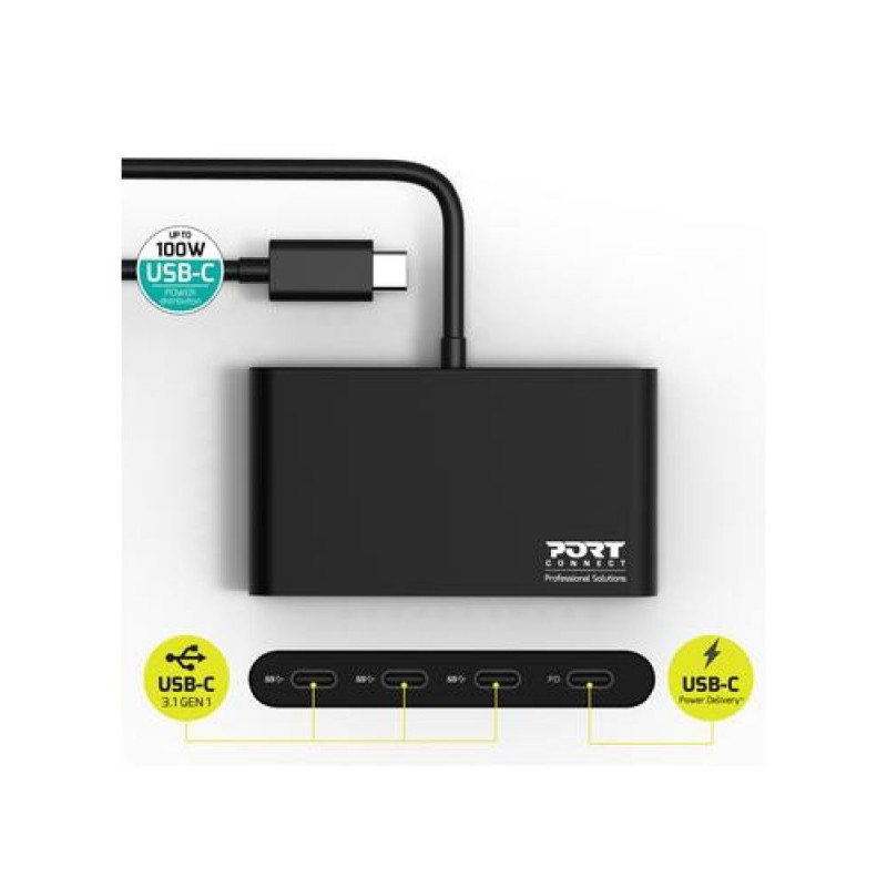 Port Designs 900147 interface hub USB Type-C 5000 Mbit/s Black