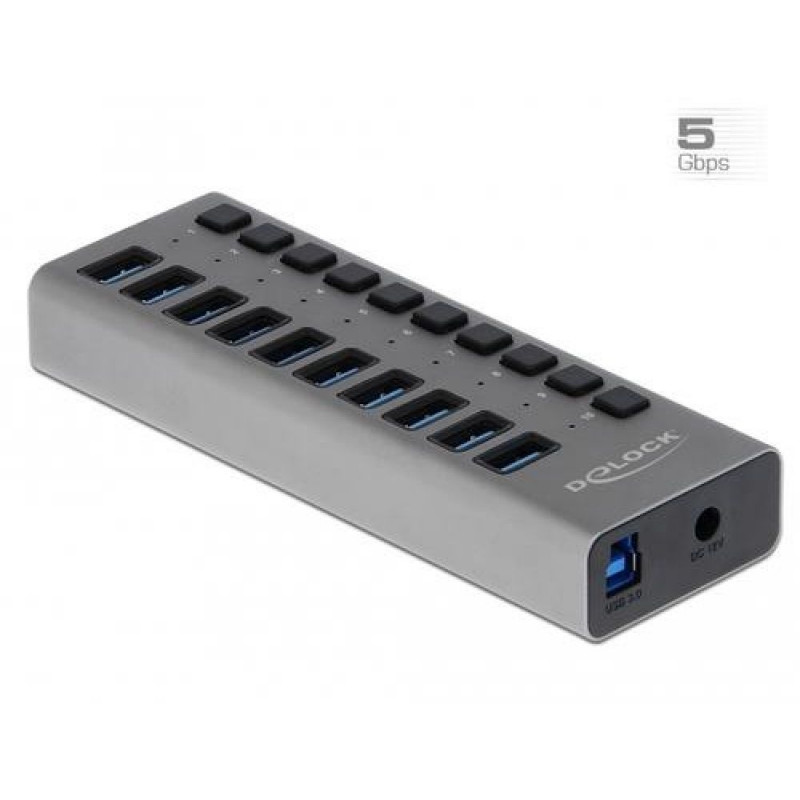 DeLOCK External 5 Gbps USB Hub with 10 Ports + Switch