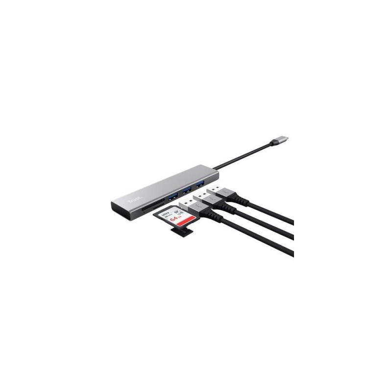 Compact, aluminium 3-port USB hub with (micro) SD card reader and USB-C connection<br><br><b>Connectivity</b><br><br>The Trust Halyx USB & Card Reader Combo comes to the aid of anyone who needs to transfer data fasWarning: Last items in stock!