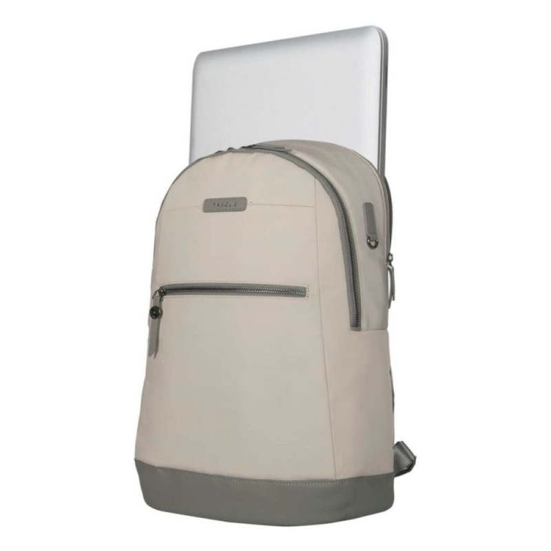 The Targus TBB65013GL laptop backpack is a versatile and functional solution designed to protect and carry laptops up to 16 inches comfortably and stylishly. Made with durability and practicality in mind, this backpack features a dedicated zippered laptop compartment that ensures the security of your electronic devices, along with a spacious secondary compartment organized with multiple pockets for orderly storage of accessories and personal items. Among its key features, the fabric is water-resistant, providing protection against adverse weather conditions and adding an extra layer of security for your belongings. It also includes a sturdy carry handle for easy grip when not worn on the back, and a luggage strap that allows attachment to wheeled suitcases, ideal for frequent travelers. For comfortable use, it has adjustable padded shoulder straps that ensure ergonomic carrying and adaptability to different body types. Additionally, the backpack offers a universal tablet compartment, expanding its functionality to safely protect and transport other mobile devices. The design is unisex, balancing refined aesthetic elements such as vegan leather details and high-quality metal hardware that provide durability and a sophisticated touch without compromising sustainability. In fact, this backpack is made with GRS-certified recycled material, reusing 14 plastic bottles to help reduce environmental impact. Its bright interior facilitates quick locating of essential items, and the hidden pocket on the back panel adds extra protection for valuables. Finished in French Oak tone, this eco-friendly backpack adapts to any personal style and daily needs, combining durability, functionality, and responsible design. In summary, the Targus TBB65013GL backpack is a balanced choice for those seeking a quality laptop backpack that safeguards their devices with added protection, offers comfortable use, and demonstrates a tangible environmental commitment.