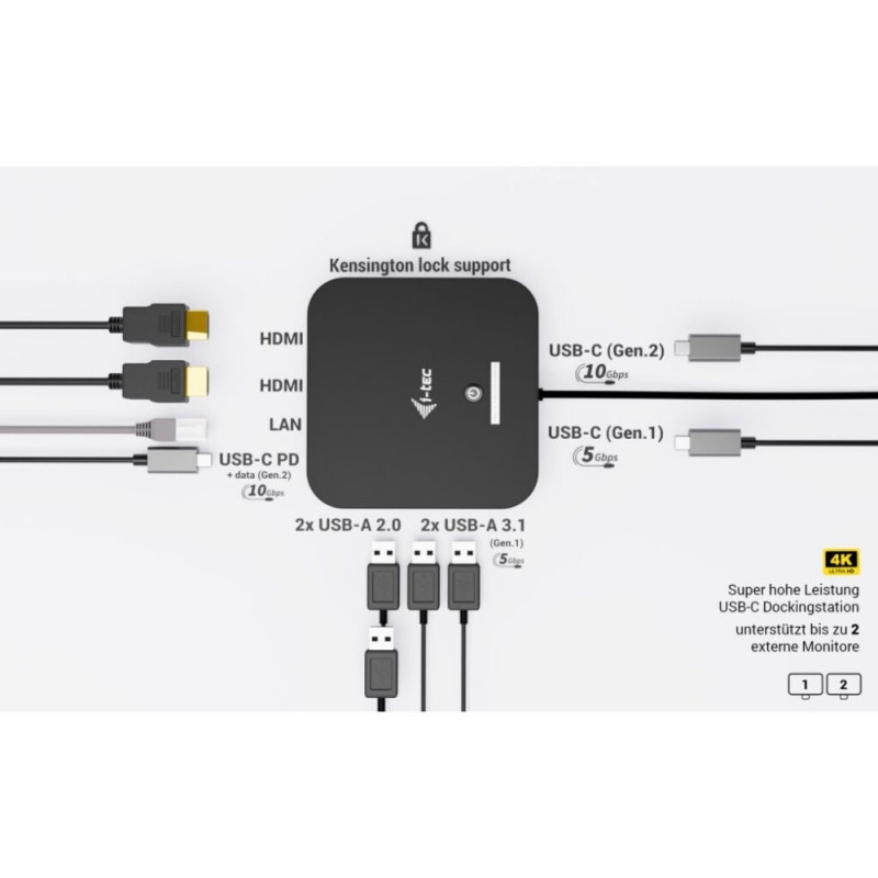 "I-TEC USB-C Dual HDMI DS 2xHDMI 1xGLAN 2xUSB-A 3.2 2xUSB 2.0 1xUSB-C Gen2 1xUSB-C Gen1 k 1x100W USB