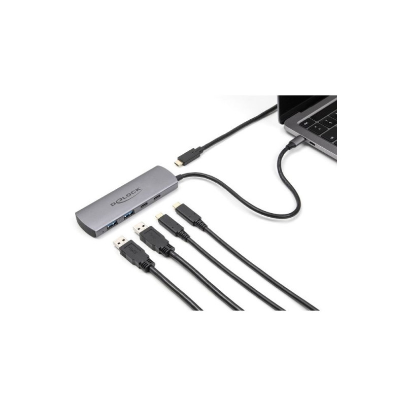 "DELOCK USB 10 Gbps 2 Port USB Typ-A + 2 Port USB Type-C Hub mit USB Type-C Anschluss und zustzliche