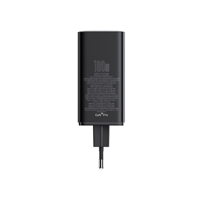 Baseus GaN6 Pro Charger 100W 2 x USB-C 2 x USB-A with Black USB-C Cable 100W 1m - Black