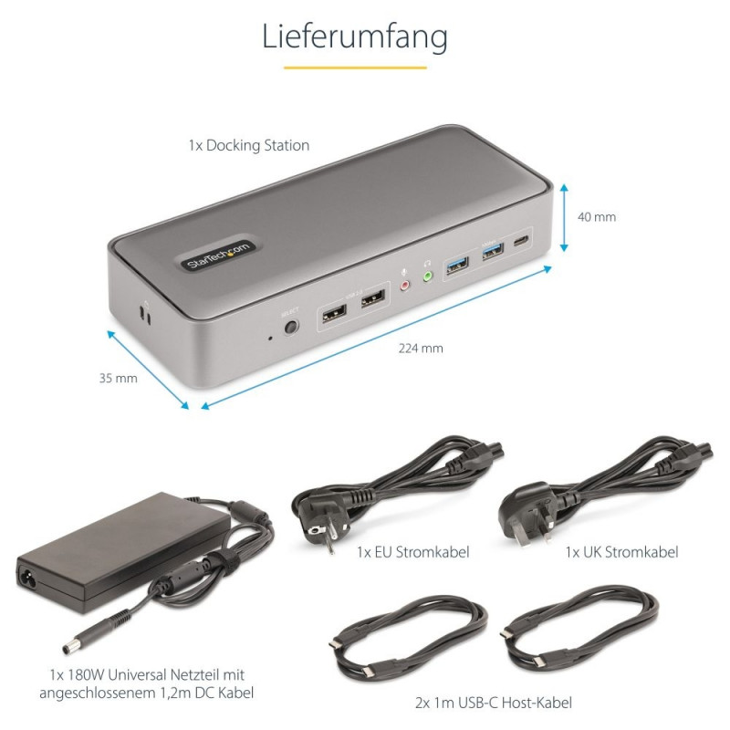 | Chipsatz | DisplayLink - DL6950, Genesys Logic - GL3590, Genesys Logic - GL9510, Parade - PS186, Realtek - RTL8211F |