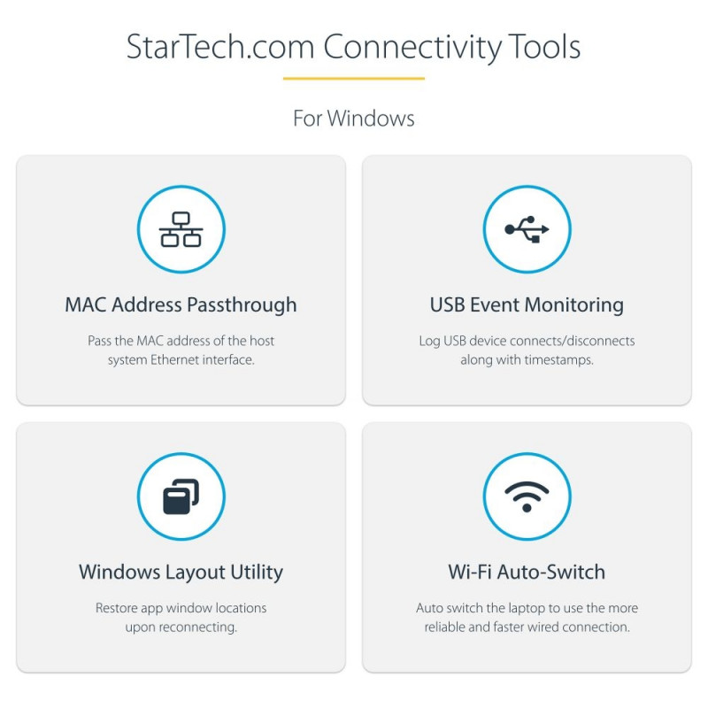 | Chipsatz | DisplayLink - DL-3900, VLI - VL810, Terminus - FE1.1, Realtek - RTL8211E |