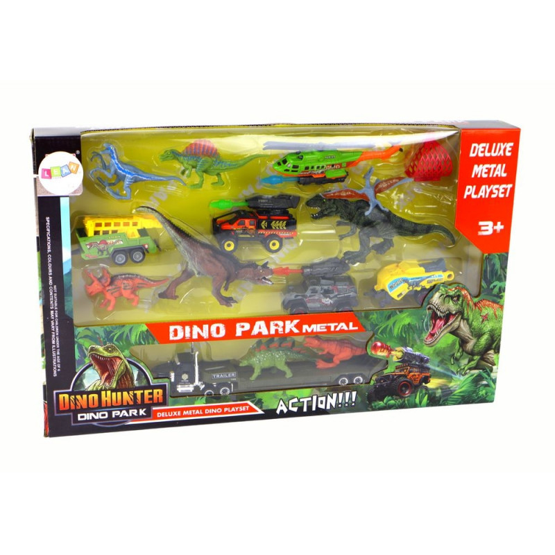Znajdziemy w nim trzy pojazdy z przyczepami, które pozwalają na przewożenie dinozaurów w terenie. Dwa z nich są wyposażone w obrotową wyrzutnię, która dodaje elementu akcji do zabawy. Ich starannie odwzorowane detale sprawiają, że zabawa staje się jeszcze bardziej ciekawa.
