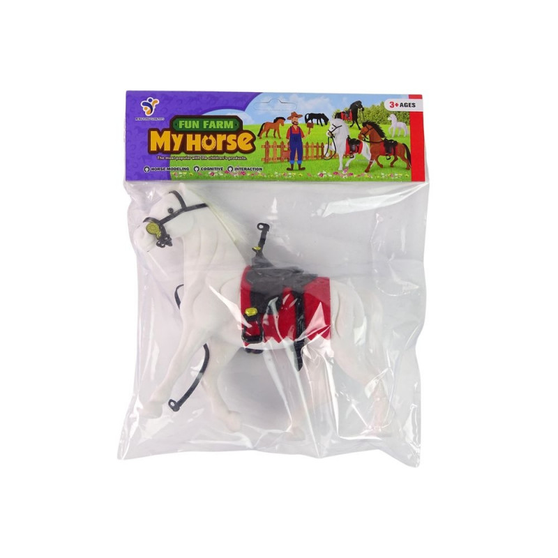 Zestaw zawiera figurkę białego, miłego w dotyku konia z czarny siodłem i czerwonym czaprakiem, przez co wspaniale sprawdzi się on jako dopełnienie kolekcji. Długi ogon i grzywa jest idealna do czesania i zaplatania warkoczy przez co Twoje dziecko pracuje nad zdolnościami manualnymi.