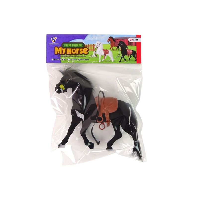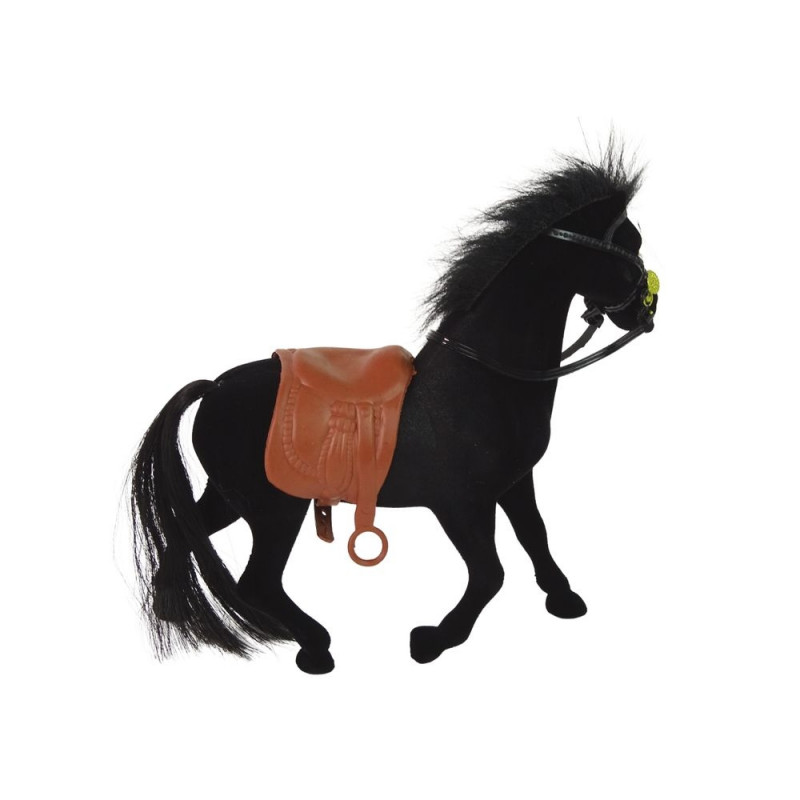 Zestaw zawiera figurkę czarnego, aksamitnego w dotyku konia z brązowym siodłem, przez co wspaniale sprawdzi się on jako dopełnienie kolekcji zwierząt małych kolekcjonerów. Figurka pozwoli dziecku na stworzenie własnego gospodarstwa w swoim pokoju.
