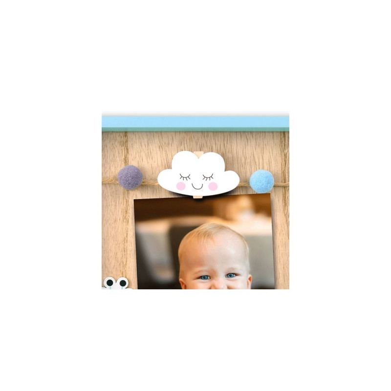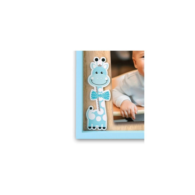 The VG546B from Zep Italia is a photo frame which is suitable for 1 photo. The following sizes can be placed in the frame vertically, 1 time 10x15 cm. The photo frame features a funny wooden look. The total dimensions, including the frame, are 15x20 cm. This photo frame has funny details like a giraffe and a cord. On the cord is a clip to which the photo can be attached vertically. There is no glass in this photo frame. This picture frame is very nice to use with a lovely baby photo.