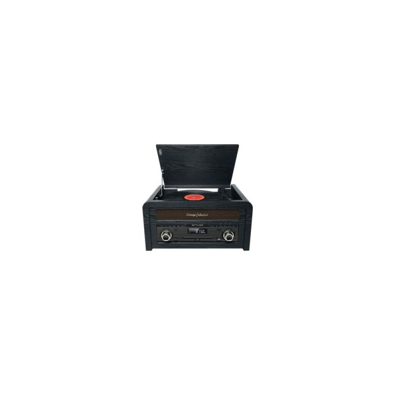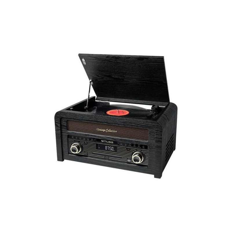 | Eritunnused | Stream music from another Bluetooth compatible device such as Laptop, Tablet or Smartphone. FM radio with 30 preset stations. Drawer-type CD door CD, CD-R/RW, MP3 compatible. Wooden cabinet. 3 speeds stereo turntable 33/45/78 RPM. USB port for play |