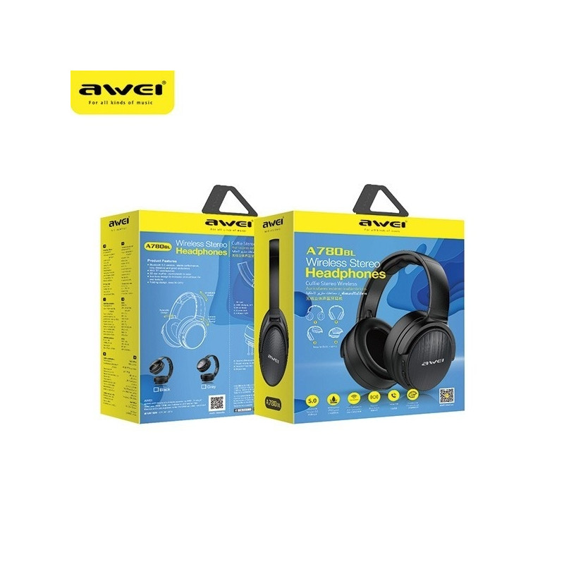The 5.0 AWEI A780BL wireless Bluetooth stereo headphones guarantee impressive sound quality from both Bluetooth-enabled devices and via the AUX port or directly from a micro SD card. A clean and dynamic sound will surprise the most demanding users.