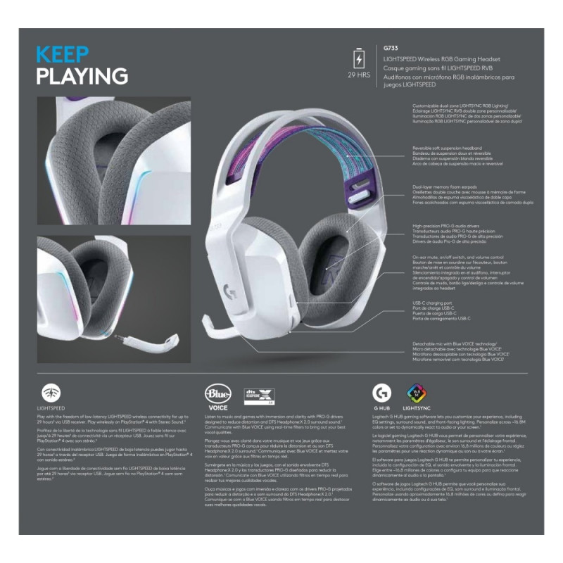 Product Description Logitech G G733 LIGHTSPEED Wireless RGB Gaming Headset - headset