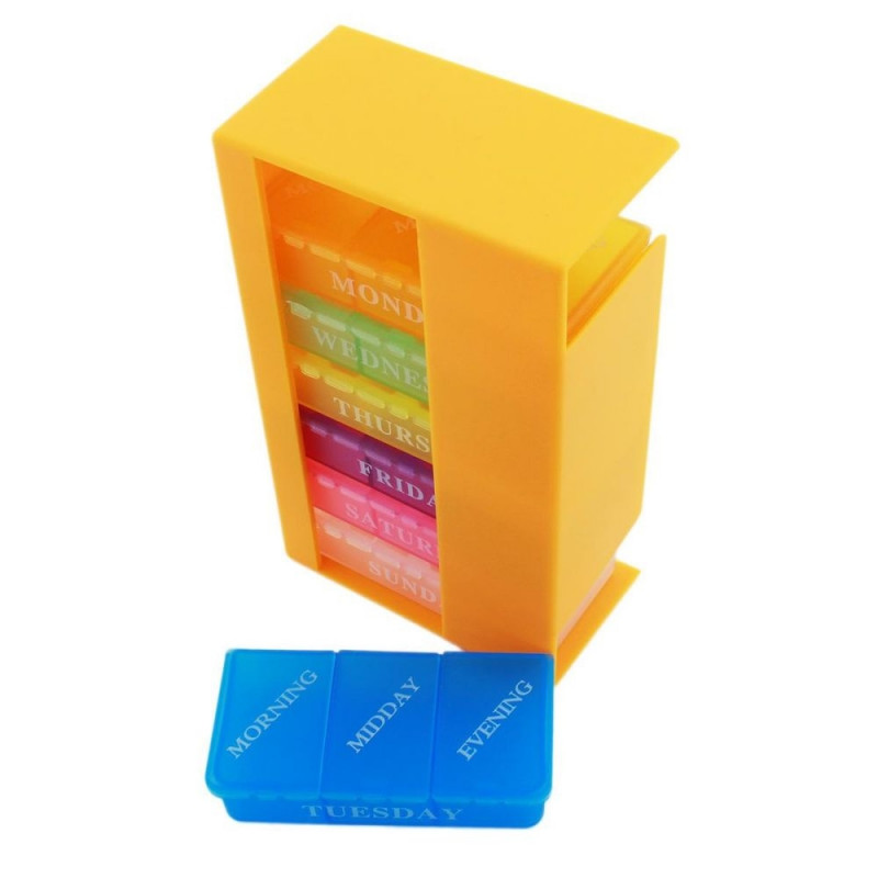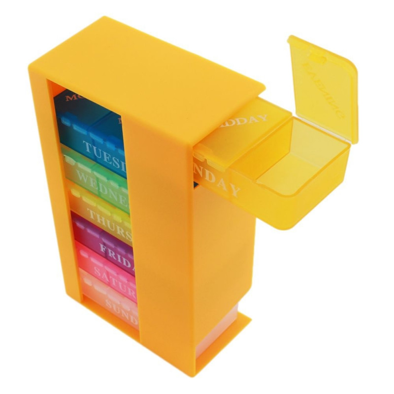 Praktyczny pojemnik, kasetka na leki. Organizer umożliwia wygodne rozłożenie lekarstw na 7 najbliższych dni. Specjalne kasetki posiadają oznaczenie wszystkich dni tygodnia.. Niezwykle łatwy w użytkowaniu (wystarczy ułożyć kasetki od dołu do góry zaczynając od pierwszej) i ułatwiający pobieranie leków przez osoby starsze i mające kłopoty z pamięcią. Wykonany z bezpiecznego tworzywa sztucznego, które nie wchodzi w kontakt z lekami.