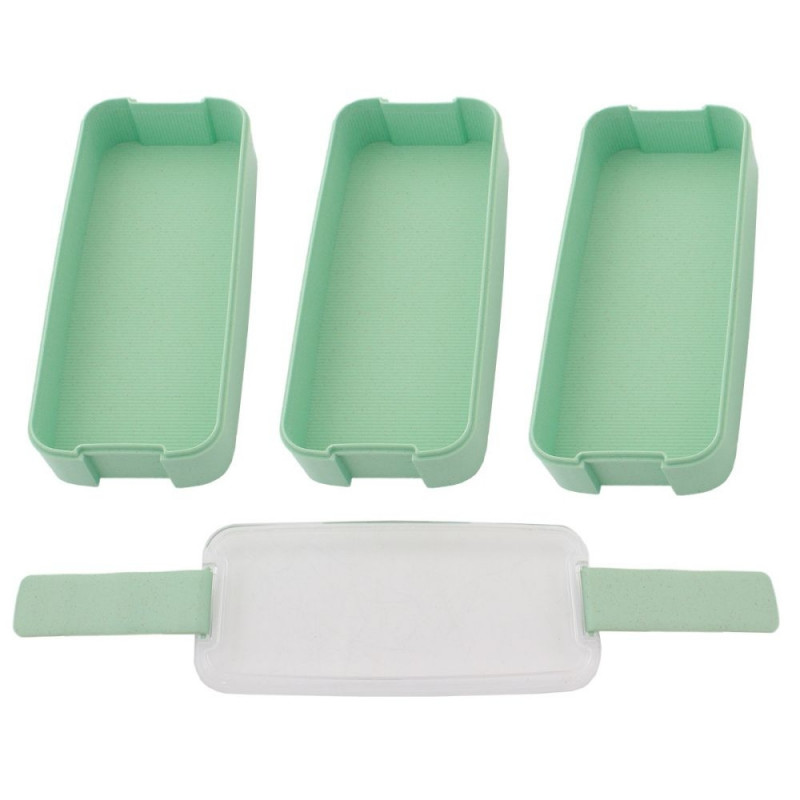 - Wyposażony w pokrywę oraz wygodny uchwyt do przenoszenia. Górna pokrywa z uszczelką zamykana jest na 2 boczne zatrzaski, które podtrzymują całość konstrukcji (wszystkie 3 pięterka).