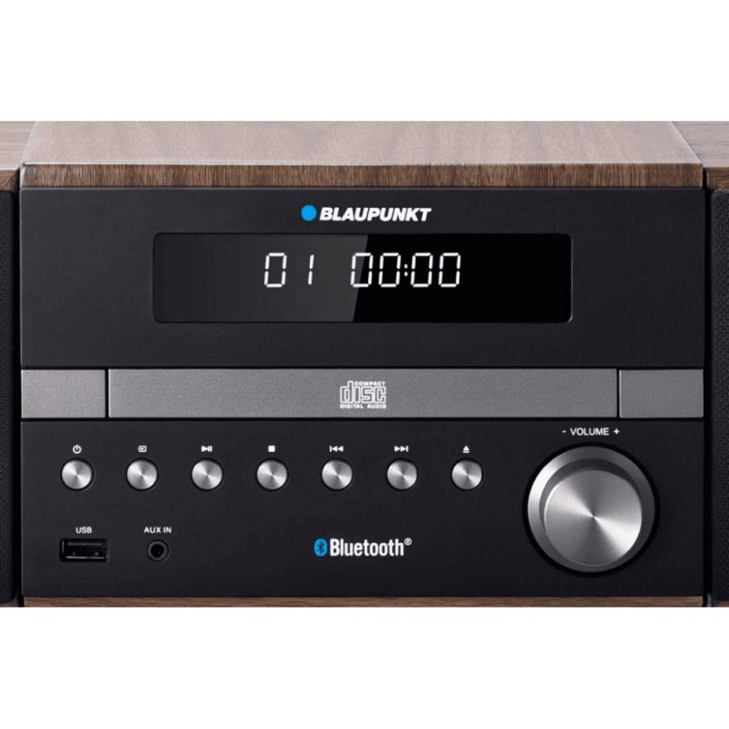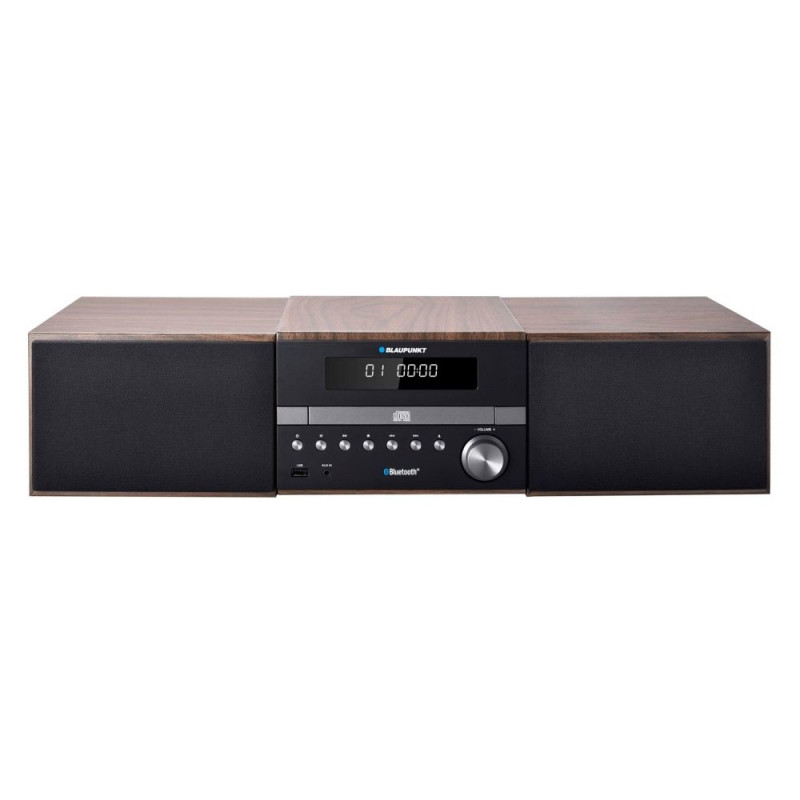 CD player with MP3 playback (ID3 tag) CD/-R/-RW/MP3/WMA support Bluetooth for wireless audio streaming from smartphone or PC FM PLL radio with RDS and 50 preset memory USB Port for music playback Clock with alarm Max. output power: 300 W (2 x 150 W) Power Output: 100 W RMS (2 x 50 W) Equalizer LED display AUX-IN Remote control Power Supply: AC 230 V~50 Hz Main unit dimensions: 200 (w) x 130 (h) x 230 (d) mm Speaker dimensions: 134 ( w) x 203 (h) x 220 (d) mm Weight: 5.8 kg