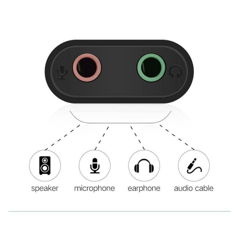 UGREEN usb audio adapter is ideal to replace your faulty sound card or audio port, it adds a mono microphone-in and a stereo audio-out port to your computer through a USB port, which enables you to connect your existing headphones, headset, speakers, or microphone with 3.5mm jack to your PC through a USB interface.