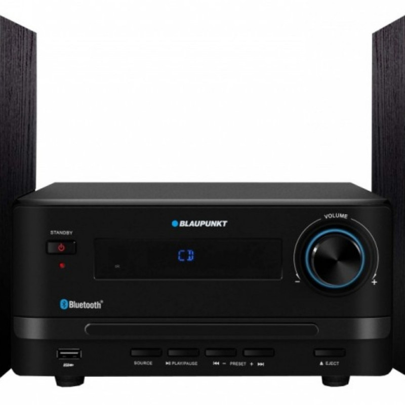 The micro-stereo is an ideal solution for small apartments, creating a mini home entertainment centre. It takes up very little space and combines many functions in one housing while being a stylish addition to any interior.The Blaupunkt MS14BT model, equipped with the Bluetooth function, allows you to play songs saved on your smartphone, laptop or those available on the Internet services.The built-in CD player with MP3-files reader enables you to play Audio-CDs and MP3 files available on recordable CD-Rs and rewritable CD-RWs. The unit also has a USB port to which you can connect any type of USB flash drive and play the audio files saved there.The manufacturer has equipped this modern device with an equalizer with POP, ROCK, JAZZ, CLASSIC and DANCE factory settings. These enable the user to adjust the music to the type of material being listened to and get carried away by his favourite sounds.This mini hi-fi set also features FM radio with a 30 station memory, which allows you to program the frequency of your favourite stations. This feature eliminates the need to always search for your favourite radio station that broadcasts popular hits. The clock and alarm function will wake every sleeper with the sounds of his favourite music.The built-in amplifier has an output power of 15 W RMS, and the maximum power of the whole unit is 45 W.The MS14BT model is very elegant, and its operation is facilitated by remote control and a legible LED display.