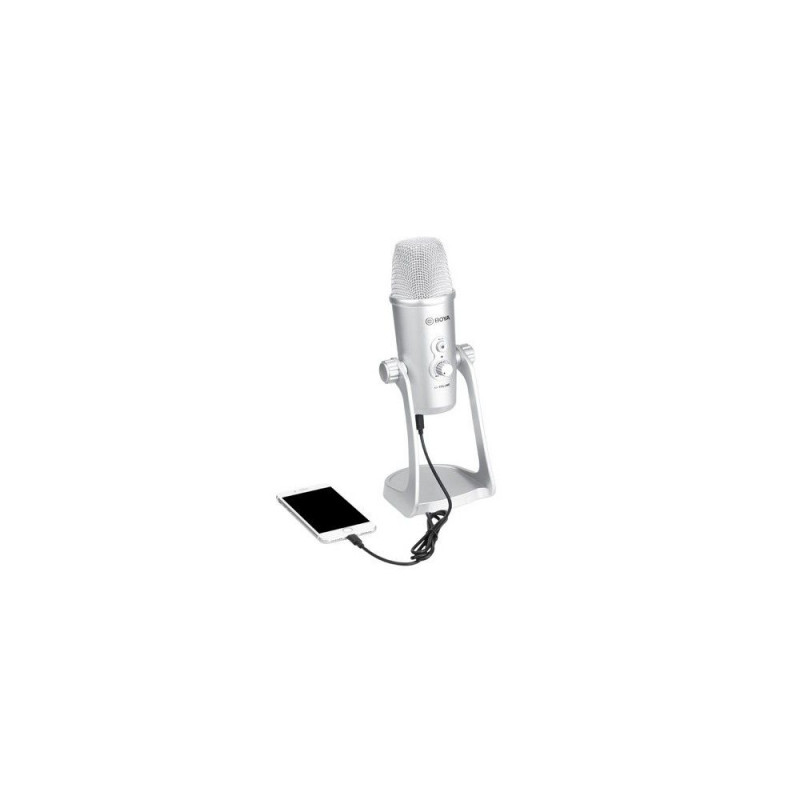 The Boya BY-PM700SP is a condenser microphone and is compatible with Apple Lightning, Android, Windows and Mac. Its polar pattern knob allows you to select multi-directional, Cardiod, Stereo and Bidirectional dialing modes, suitable for demanding situations such as recording, interviews, conference calls, vocals, instruments, podcasts and more.