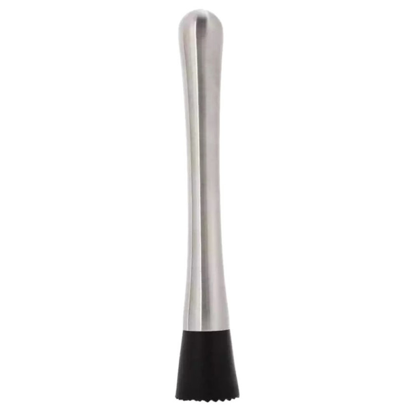 Tłuczek barmański - muddler. To niezbędne akcesorium służące do ubijania drinków. Wykonany z solidnej stali. Wyprofilowana rączka ułatwia jego trzymanie. Końcówka tłuczka wykonana z twardego, perforowanego tworzywa.
