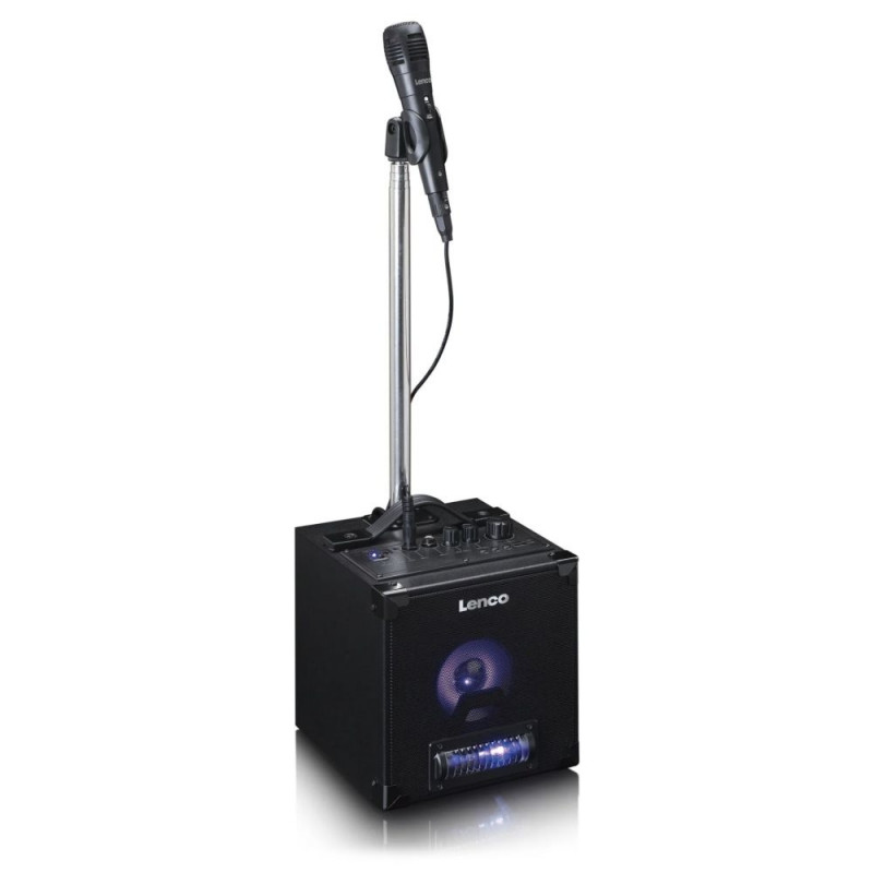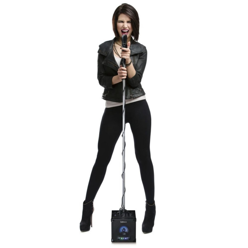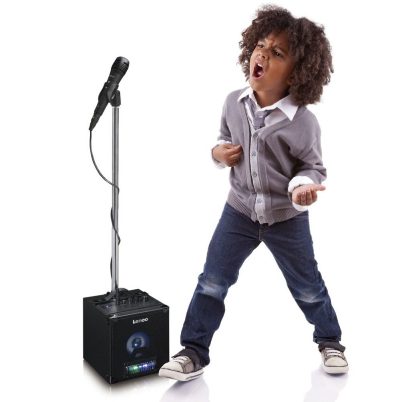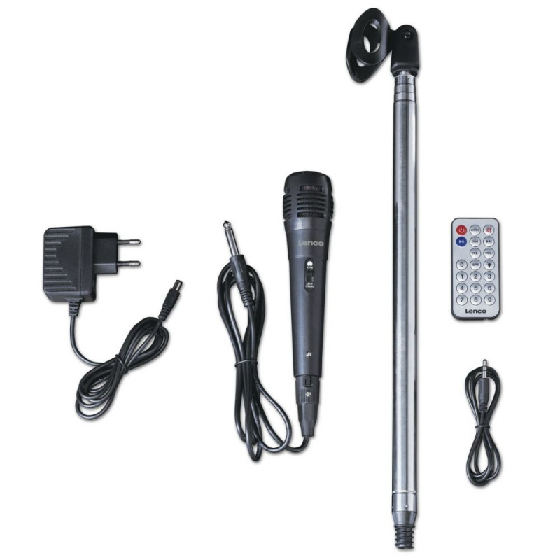 Lenco BTC-070 mikrofoniga saad laulda kaasa oma lemmikartistidega. Sellel on helitugevuse ja kaja reguleerimine. 1,70 meetri pikkuse kaabliga saab seda ruumis liigutada. Või aseta mikrofon kaasasolevasse statiivi ja laula nagu tõeline artist. Statiiv on eemaldatav ja kõrgust saab reguleerida kuni maksimaalselt 1,3 meetrini. Muusika mängitakse valjuhääldi kaudu, mille väljund on 8 vatti.