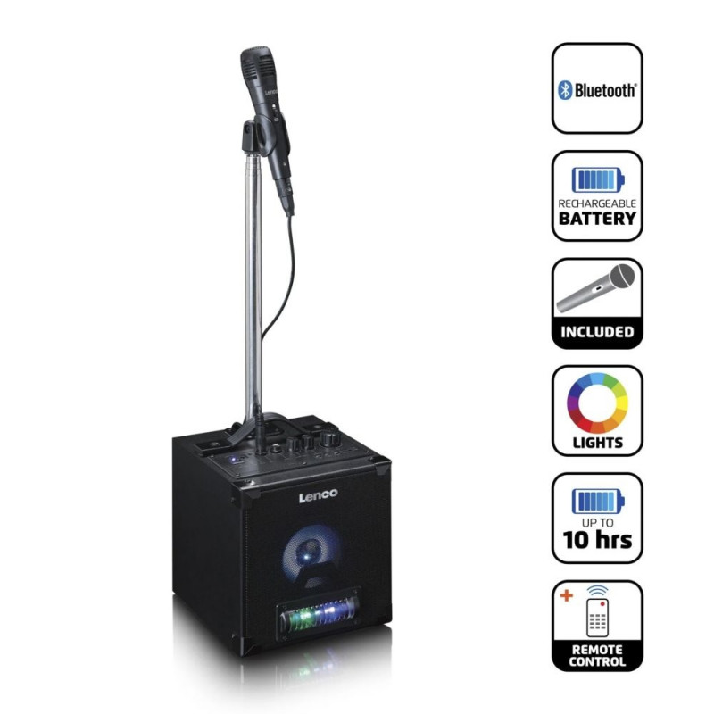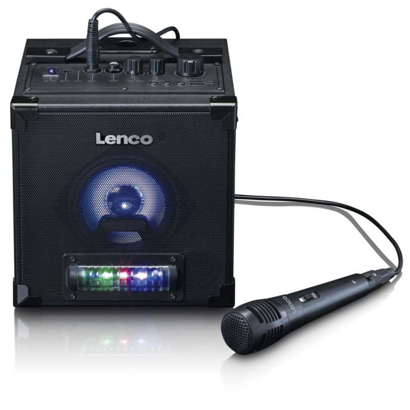 Lenco BTC-070 karaoke komplektiga on sinu pidu täielik. Ühe seadmega saad kontrollida nii heli kui ka valgustust, muutes ruumi väikeseks diskoks. Täislaetuna kestab see kuni 10 tundi.