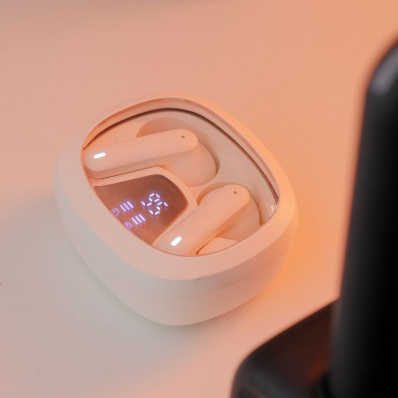 Handy, comfortable TWS headphones fit your ears well, so you will not feel any discomfort even after many hours of using them. The Bluetooth connectivity enables listening to music or audiobooks, as well as making calls, thanks to the built-in microphone. The portable case with a charging function ensures that the headphones will always be charged, and the compact design allows you to take them anywhere while storing safely.