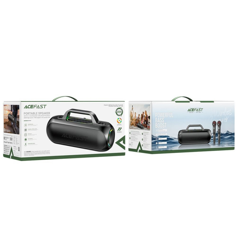 Acefast K1 Wireless Karaoke Speaker with 2 Microphones, Range Up to 800m², 200W Power - Black