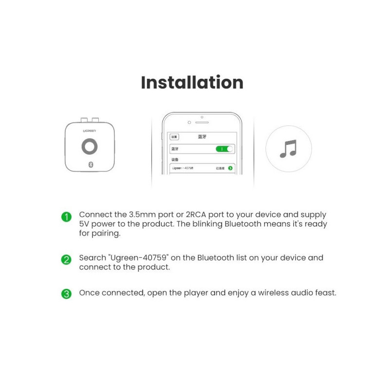 Ugreen Bluetooth audio adapter BT 5.1 aptX 2xRCA/3.5mm (40759)