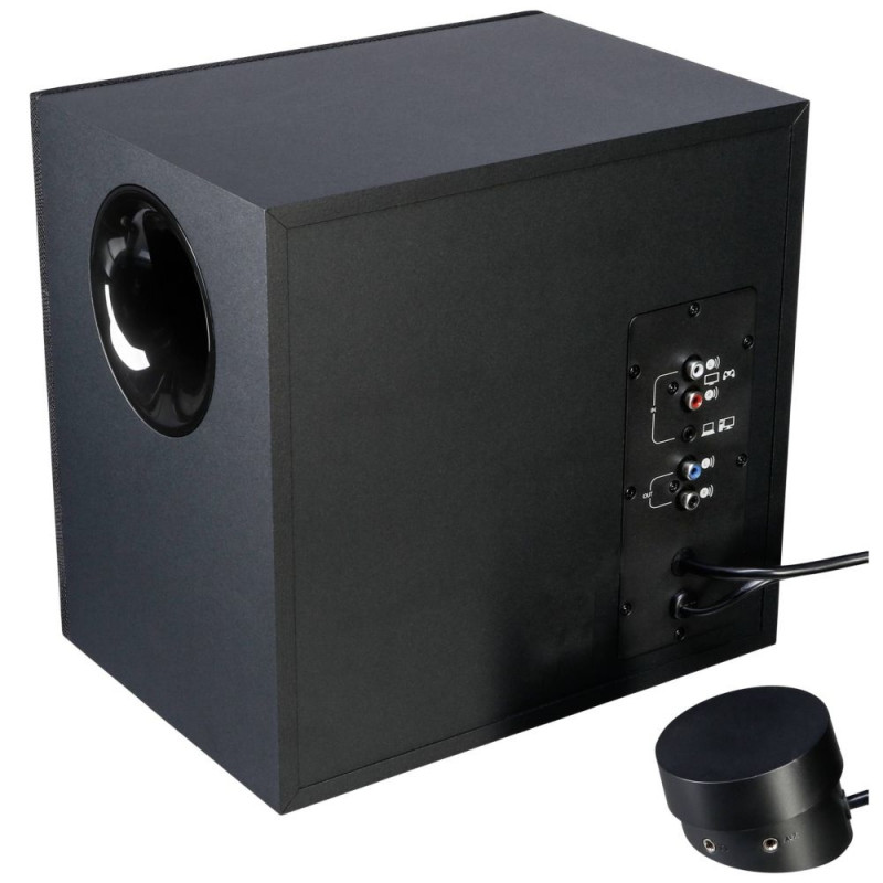 Easily access all controls from one integrated control pod, including power, volume, bass level, headphone jack and auxiliary jack.