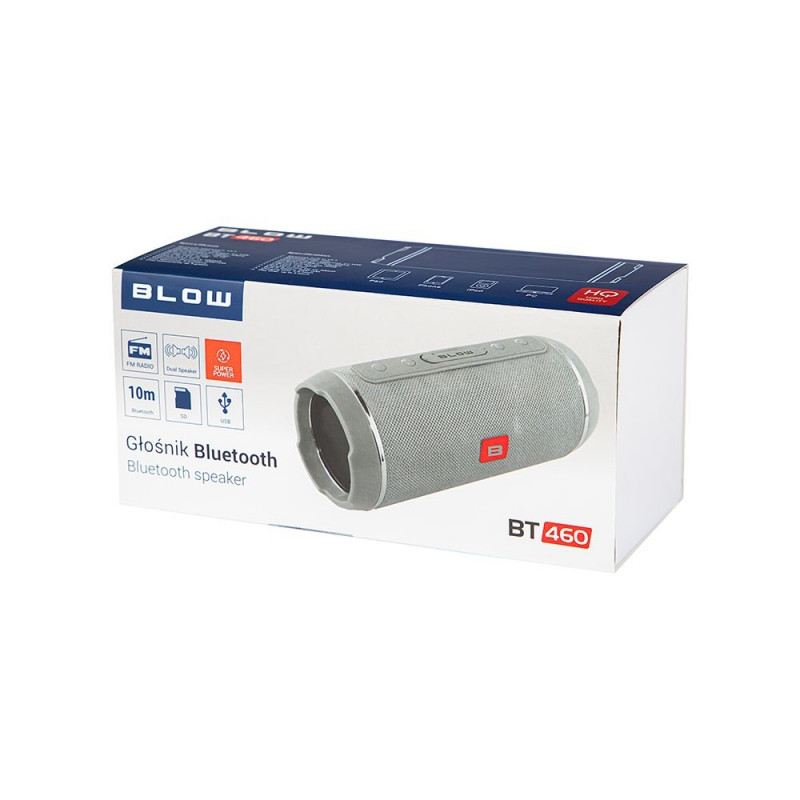 Głośnik Bluetooth BT460 w kolorze szarym marki Blow to doskonałe bezprzewodowe źrdło dźwięku wysokiej jakości, ktre umili niejedno spotkanie przy grillu, na plaży czy też przy okazji kameralnych imprez. Posiada wyjątkowy kształt i niewielkie wymiary ktre pozwolą zabrać go praktycznie w każde miejsce. Dzięki możliwości połączenia głośnika z urządzeniami obsługującymi technologie Bluetooth V5.3 (np. telefon, smartfon, tablet) ulubiona muzyka jest odtwarzana bez zbędnych, ograniczających kabli, przez co jest idealnym kompanem wszelkich wyjazdw.