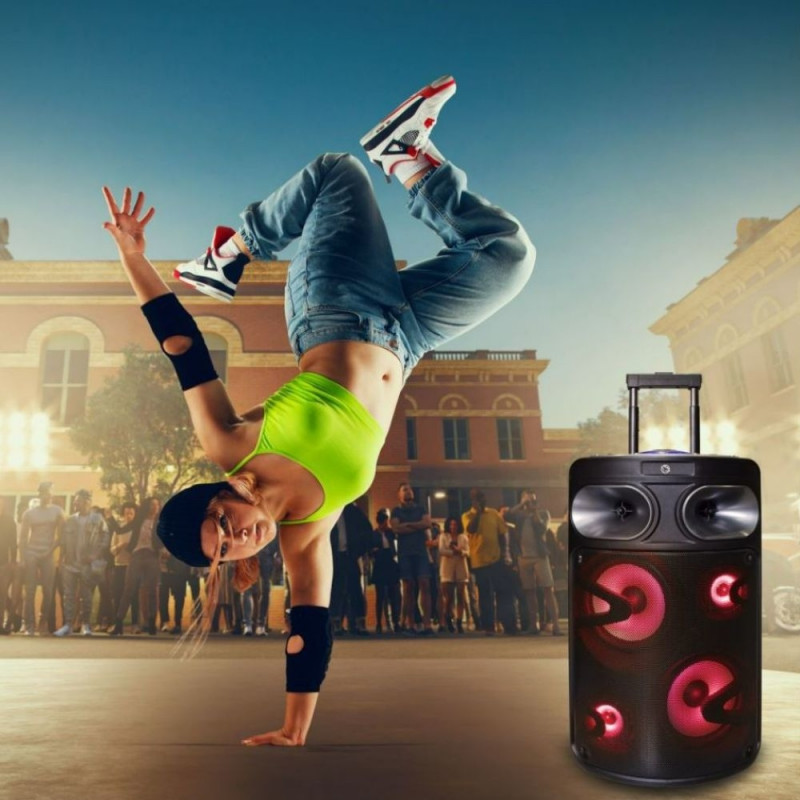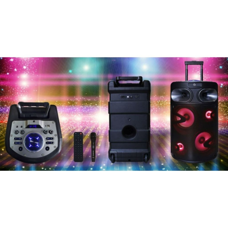 The 140 W karaoke speaker is the perfect solution for every music and karaoke lover. Powerful sound, easy handling and mobility make it the ideal equipment for any party. Surprise your guests with crystal clear sound and endless possibilities!