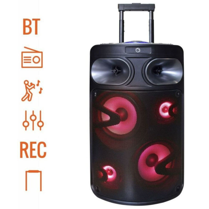 Functions: Karaoke, Bluetooth, Equalizer, FM radio, Power 140 W, Easy to transport, Recording, Microphone priority function