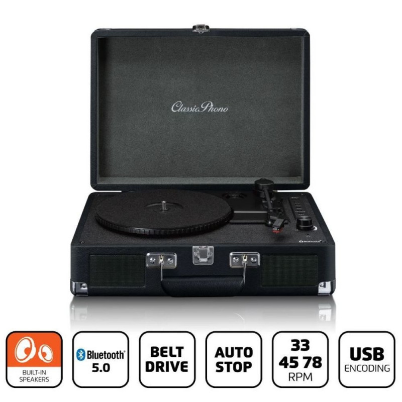 This handy retro suitcase record player doesn’t just play your vinyl records. It enables you to stream your favourite songs to the built-in speakers, using your phone or tablet. In addition, it’s possible to record the played music directly to USB.