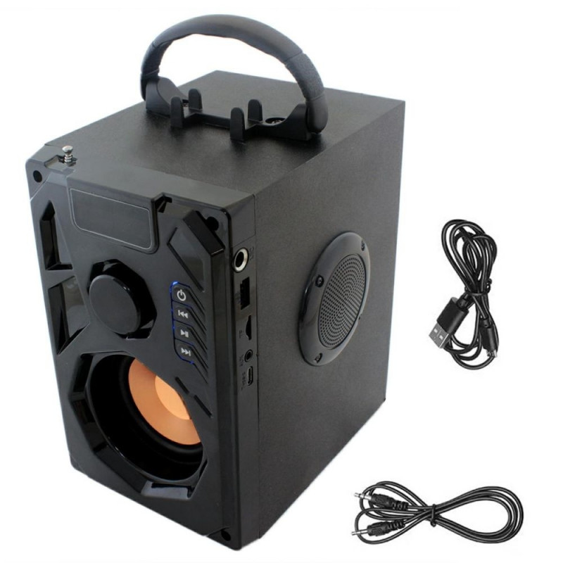 Wspaniały, przenośny głośnik w kształcie kolumny, o dużej mocy. Dzięki swojej budowie umożliwia odtwarzanie czystego dźwięku o wspaniałej jakości, w najpopularniejszych formatach (MP3, WMA, WAV). Ponadto głośnik został wyposażony w standardowy odtwarzacz muzyki wykorzystujący mnóstwo zaimplementowanych tutaj dodatkowych gniazd rozszerzeń takich jak np. Bluetooth o zasięgu aż 10 metrów, złącze AUX, port USB oraz slot kart pamięci microSD/TF. Urządzenie posiada również radio FM o standardowym zakresie częstotliwości, wraz z funkcją automatycznego wyszukiwania i zapisywania stacji radiowych. Głośnik jest całkowicie bezprzewodowy (ma wbudowany akumulator o dużej pojemności, który możesz naładować nawet z użyciem powerbanku bądź zwyczajnej ładowarki). To wspaniałe, wielofunkcyjne urządzenie audio zapewnia niesamowite doznania muzyczne nawet bardziej wymagającym użytkownikom. Stanowi poza tym doskonały kombajn który umili każdą chwilę w miejscach bez dostępu do prądu elektrycznego z sieci. Dzięki wygodnemu uchwytowi możesz je łatwo przenieść w dowolne miejsce bądź nosić je ze sobą.