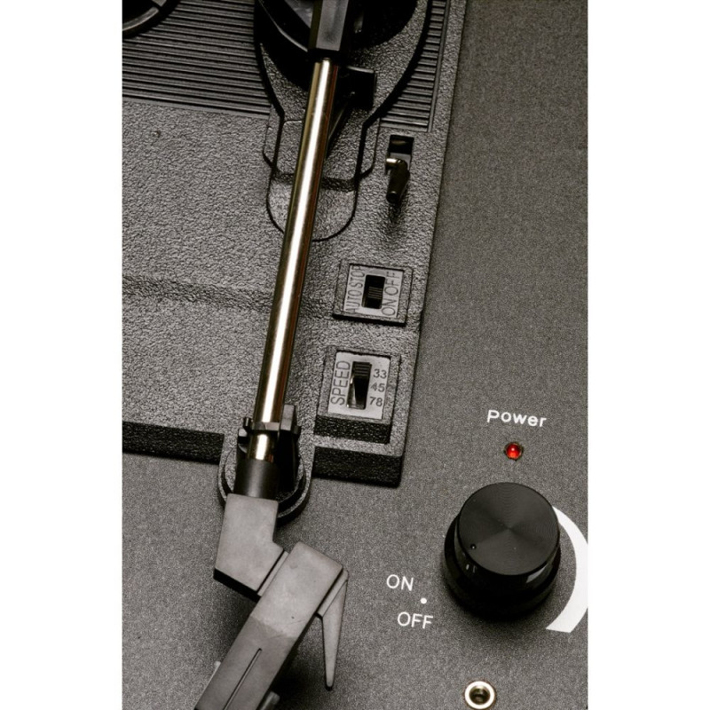 Works also as normal turntable with built-in speakers & phono connection on back for connecting with music system USB turntable with PC recording software included Can play 331/3 rpm, 45 rpm or 78 rpm vinyl records Record from LP to PC using USB cable and included PC software Tonearm autostop function Comes in a nice suitcase design for easy transportation Audio output through speakers: 2 x 1W Power supply: USB powered (by adaptor or PC connection) Size: 350x 250x 105 mm Weight: 2,2 kgTechnical dataTonearm Shape: StraightPorts & interfaces Headphone outputs: 1 AUX-in: Yes Line outputs (RCA): 2 USB version: 2.0 USB ports quantity: 1Power supply AC adapter frequency: 50 Hz AC adapter input voltage: 230 VLoudspeakers Number of speakers: 2 RMS rated power: 2 WFeatures Nominal speeds: 33 1/3, 45, 78 rpm Volume control: Rotary Built-in amplifier: Yes Tone control: Yes Auto stop: Yes On/off switch: Yes Colour: RedPackaging content Dust cover included: Yes 45 rpm adapter: YesWeight & dimensions Width:265 mm Height:115 mm Depth:352 mm Weight:3.15 kg