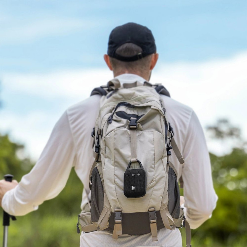 Built-in carabiner - take it anywhereThe practical and sturdy carabiner allows you to attach the speaker to a backpack, bike or belt – so you always have it at hand!