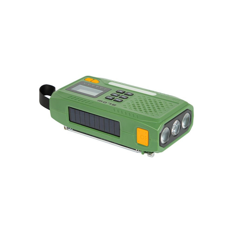 RADIO PRZENOŚNE ANALOGOWE ZASILANE SOLARNIE LUB DYNAMO Z LATARKĄ I SYGNAŁEM SOS