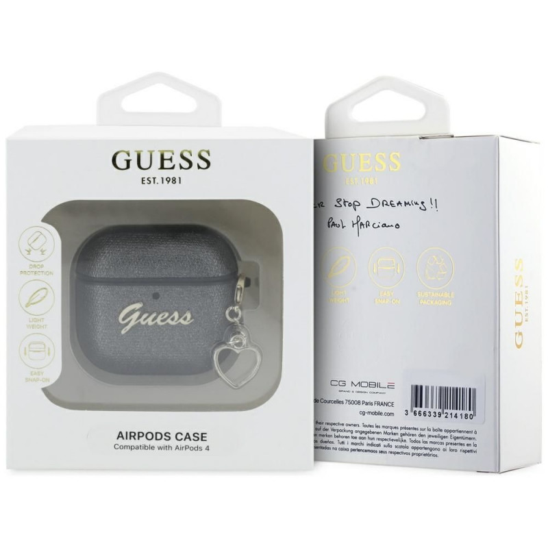Guess Metallic Script Charm Case for AirPods 4 - Black